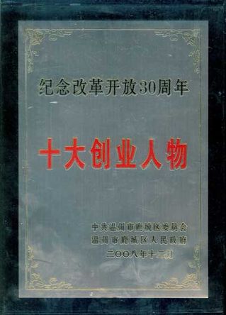 日前,鹿城區(qū)召開了紀(jì)念改革開放30周年大會。會上,對榮獲改革開放30周年“十大創(chuàng)業(yè)人物”、“十大典型事例”、“十大知名品牌”的個人和企業(yè)進行了頒獎。我公司董事長虞培清獲得“十大創(chuàng)業(yè)人物”榮譽。