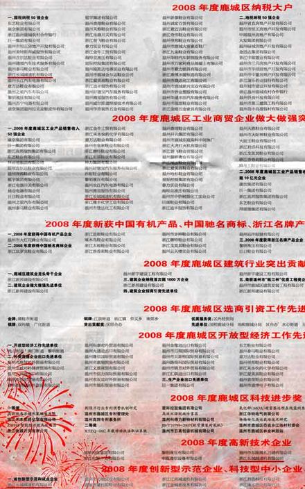 2009年2月6日《溫州日報》12版專版對此鹿城區(qū)經(jīng)濟工作會議隆重召開表示祝賀,并刊登了表彰內(nèi)容。