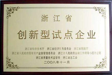 浙江省創(chuàng)新型試點企業(yè)牌匾