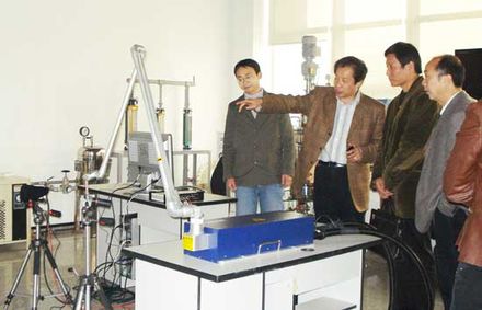 參觀實驗室,虞董正在向外經貿局領導介紹公司新購的PIV實驗設備