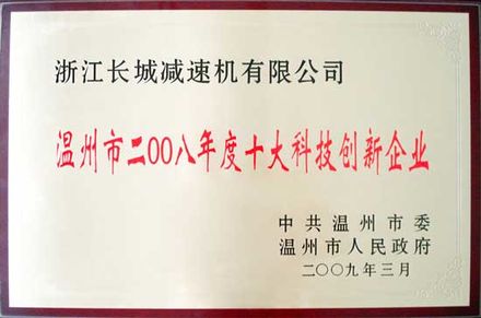 溫州市2008年度十大科技創(chuàng)新企業(yè)牌匾
