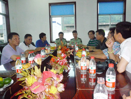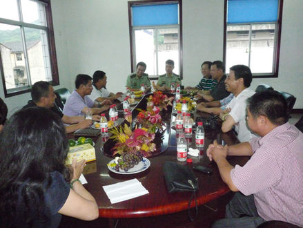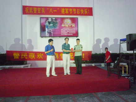 我公司董事長(zhǎng)虞培清(左二)與武警們親切慰問(wèn)交談