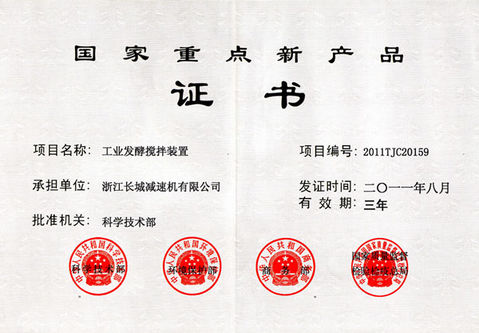 “工業(yè)發(fā)酵攪拌裝置”項目--“國家重點新產(chǎn)品”