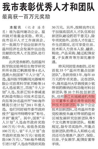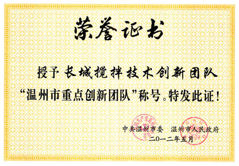 “溫州市重點創(chuàng)新團隊”稱號證書