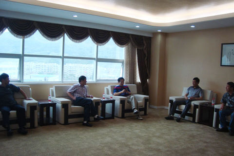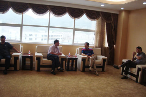 下組圖是我公司董事長虞培清和李局長一行在會議室里融洽會談。