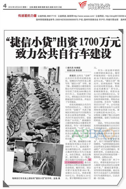 “‘捷信小貸’出資1700萬(wàn)元致力公共自行車(chē)建設(shè)”