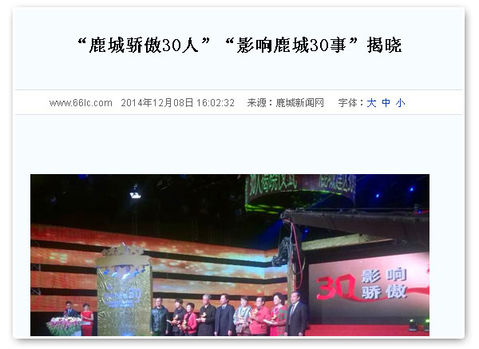 2014年12月8日,“溫州市鹿城建區(qū)30周年影響鹿城30事”和“鹿城驕傲30人”揭曉儀式在溫州市廣電中心1號(hào)演播大廳隆重舉行,現(xiàn)場(chǎng)匯聚了溫州各大媒體。今日各大新聞爭(zhēng)相報(bào)道,祝賀鹿城建區(qū)30年巨變,祝賀被選的“鹿城驕傲30人”(我司董事長(zhǎng)虞培清榮獲了此項(xiàng)殊榮)。