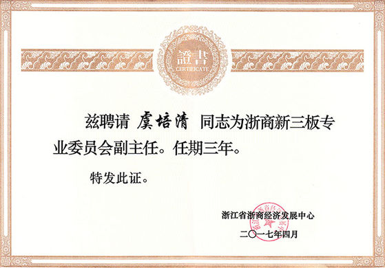 熱烈慶賀虞培清董事長(zhǎng)榮聘為“浙商新三板專業(yè)委員會(huì)副主任”
