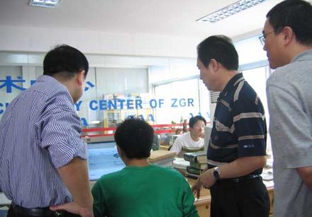 虞培清總經(jīng)理陪同市、區(qū)科技局領(lǐng)導(dǎo)專家察看PDM系統(tǒng)使用現(xiàn)場