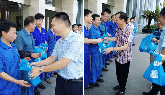 8月16日上午10時,鹿城區(qū)工會副主席方克鵬、輕工園區(qū)工會副主席徐增田帶隊來到我司,對一線員工進行慰問,并囑咐他們高溫天氣的注意休息。我司總經(jīng)理虞淑瑤博士、工會主席夏建敏同志等也非常重視員工去暑工作,詳細(xì)講解了公司去暑方法,得到工會領(lǐng)導(dǎo)的高度認(rèn)可,同時也感謝區(qū)工會給我們送來的慰問與關(guān)懷。