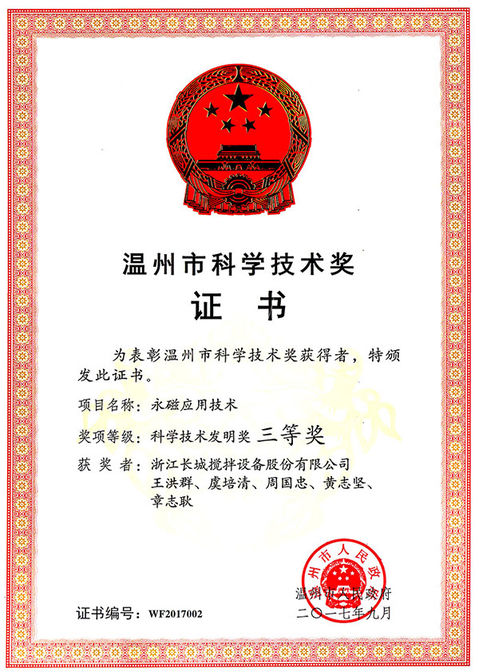熱烈祝賀我公司“永磁應(yīng)用技術(shù)”項目榮獲科學(xué)技術(shù)發(fā)明獎(三等獎)