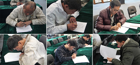 通過理論培訓(xùn)、現(xiàn)場互動(dòng),各位焊工師傅對(duì)于焊接操作的基本理論概念、操作規(guī)程以及如何規(guī)避焊接操作中的缺陷進(jìn)行了系統(tǒng)化的學(xué)習(xí)并仔細(xì)地做了記錄。緊接著舉行了焊接知識(shí)競賽,對(duì)各位焊工師傅的培訓(xùn)成果進(jìn)行了驗(yàn)收。答題中,焊工師傅屏息凝神作答,仔細(xì)謹(jǐn)慎的樣子一如平時(shí)的焊接操作。