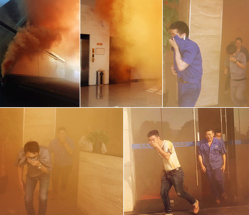 消防教員向大家講解說明了各類火災常識、滅火器分類及使用范圍、復雜情況下的各種逃生方法和火災案例分享等理論知識,并演示了不同滅火器的具體使用方法與技巧。隨后的逃生演練,為了讓員工的感受更真實,在樓梯間投放煙霧彈,模擬火災現場,多名員工反應說在濃煙中伸手不見五指,心里真的是有些慌,感受很真實,這樣的演練很有意義。