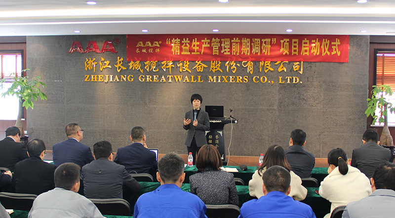 隨后,精益老師從三個(gè)方面分享了項(xiàng)目推進(jìn)的要求和期望;首先,他通過事前調(diào)查內(nèi)容的說明,強(qiáng)調(diào)了項(xiàng)目調(diào)查階段的重要性,圍繞PQCDSM各個(gè)方面對(duì)企業(yè)進(jìn)行全面的診斷,希望大家能夠配合老師的工作,提供最真實(shí)的現(xiàn)狀和數(shù)據(jù);其次他結(jié)合長(zhǎng)城公司的企業(yè)文化與精益生產(chǎn)核心的指標(biāo)表達(dá)了對(duì)項(xiàng)目的期望,希望各個(gè)部門發(fā)揮自己的智慧,積極參與項(xiàng)目的推進(jìn),達(dá)成我們的目標(biāo);最后,繆老師從理解力、學(xué)習(xí)力、行動(dòng)力三個(gè)維度分享他對(duì)執(zhí)行力的看法,希望長(zhǎng)城攪拌的管理團(tuán)隊(duì)是具備真正執(zhí)行力的團(tuán)隊(duì),精益生產(chǎn)轉(zhuǎn)型成功與否核心在于團(tuán)隊(duì)的努力、成長(zhǎng),精益生產(chǎn)推進(jìn)的過程也是造物育人的過程。