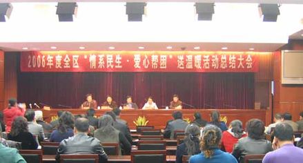 2006年度全區(qū)“情系民生·愛心幫困”送溫暖活動(dòng)總結(jié)大會(huì)現(xiàn)場(chǎng)