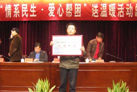 辦公室主任姜立波代表公司接受“2006年‘情系民生·愛心幫困’先進(jìn)單位”榮譽(yù)牌匾