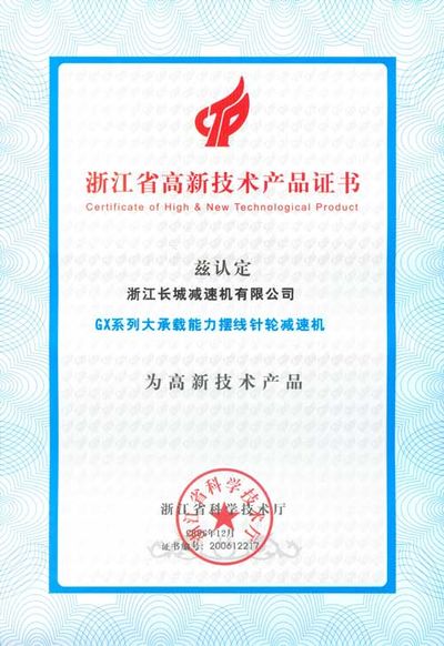 公司兩項新產(chǎn)品IMC型感應(yīng)式異步高溫磁力耦合傳動器和GX系列大承載能力擺線針輪減速機(jī)獲浙江省高新技術(shù)產(chǎn)品證書。