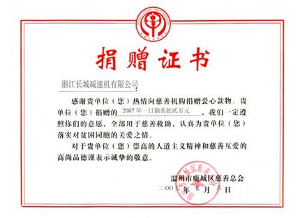 日前,公司在2007年鹿城區(qū)一日捐活動中,向貧困同胞捐款兩萬元,獲溫州市鹿城區(qū)慈善總會頒發(fā)的“愛心捐贈證書”。近年來,公司頻頻向社會捐資捐物,體現(xiàn)了企業(yè)回報社會以及對貧困大眾的關(guān)愛之情。