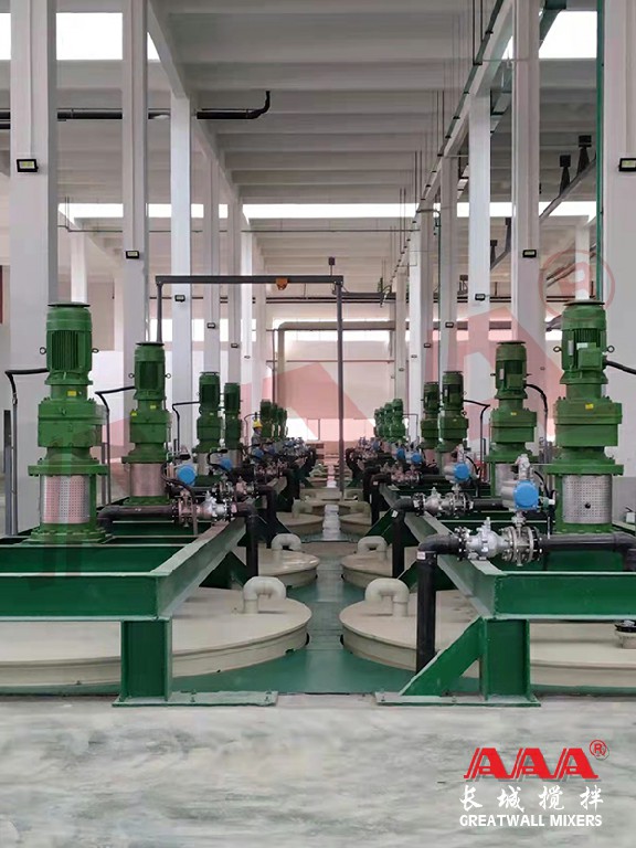 濕法冶煉是利用浸出劑將礦石、精礦、焙砂及其他物料中有價金屬組分或待提取組分溶解在溶液中或以新的固相析出。一般要求攪拌設(shè)備具有耐腐蝕和耐磨損的功能,有些浸取過程還需要通入氧氣,我們針對浸出過程開發(fā)了適合氣液固三相傳熱、傳質(zhì)和反應(yīng)的攪拌設(shè)備。