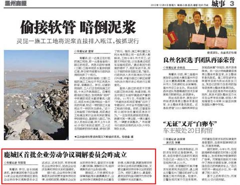 2012年12月7日(星期五)上午,由我公司在內(nèi)的14家企業(yè)組成的鹿城區(qū)首批企業(yè)勞動(dòng)爭(zhēng)議調(diào)解委員會(huì)正式成立,區(qū)協(xié)調(diào)勞動(dòng)關(guān)系三方機(jī)制2012年第2次會(huì)議暨企業(yè)勞動(dòng)爭(zhēng)議調(diào)解委員會(huì)授牌儀式在我公司二樓會(huì)...
